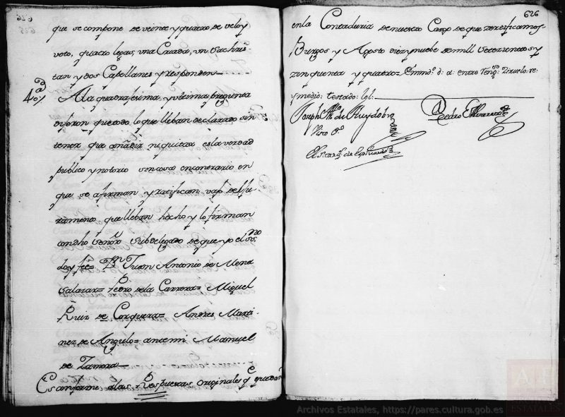 publico y notorio sin cosa en contrario en que se afirman y ratifican vajo del juramento que lleban hecho y lo firman con dicho señor subdelegado de que yo el (ssno) doy fe; Don Juan Antonio de Mena Salazar; Pedro de la Carrera; Miguel Ruiz de Corquera; Andres Martinez de Angulo; Ante mi Manuel de Zamora.