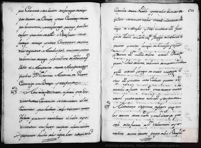 partes, y la dignidad Arzobispal que lleva la otra terzera parte; Y los diezmos comunes del horreo y azerbo se reparten entre los Beneficiados desta dicha Yglesia que lleban las dos terzeras partes, y la dignidad Arzobispal de este Arzobispado que lleba la otra terzera parte sacandose antes de la partizion tres fanegas de trigo y doze cantaras y media de Vino que lleban otros Benefiziados por Claveria o recolección dos fanegas de trigo por razon de Curato y diez Cantaras de vino por lo mismo, y una fanega de trigo por las trojes que son de dichos Benefizios: una fanega de trigo y zinco cantaras de vino dicha dignidad Arzobispal; treinta y rinco zelemines de trigo y lo mismo de Zebada que lleba el Arzipreste de este arciprestazgo que lo es Dn Thomas Antonio de Garro Canonigo en Burgos y responden…
