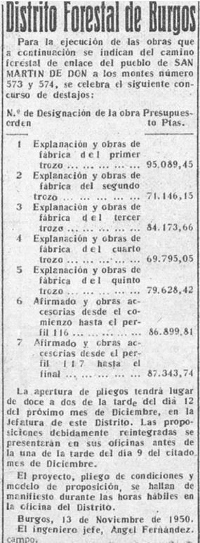 Se sacan a subasta las obras de lo que parece ser el camino del monte (el cual conocemos como "la carretera")