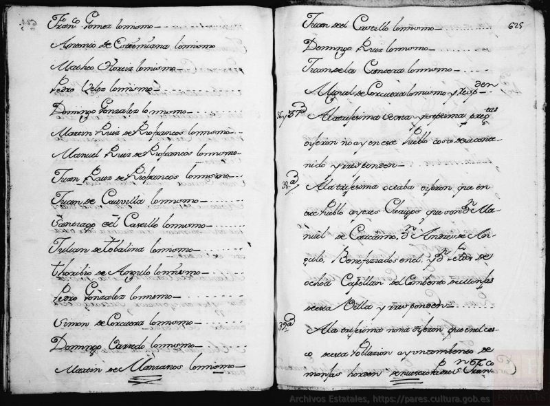 A la trijesima nona dijeron que en el casco desta poblazion ay un combento de monjas horden de nuestro padre san Francisco que se compone de veinte y quatro de velo y voto, quatro legas, una Criada, un sachristan y dos Capellanes y responden…