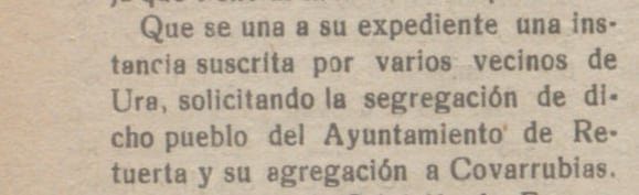 El castellano : diario independiente.: Año XXXV Número 10461 _ 28/09/1934 https://prensahistorica.mcu.es/es/catalogo_imagenes/grupo.do?path=198183&posicion=1&presentacion=pagina <u>ANOTACIÓN</u> Aunque el recorte es breve, por el encabezado y el contexto se deduce que en 1934 todavía existía malestar o protesta en Retuerta relacionada con aquella segregación. Esto sugiere que la cuestión no fue pacífica ni olvidada rápidamente. Es posible que hubiese tensiones económicas (pérdida de contribuyentes, montes comunales, aprovechamientos, etc.).