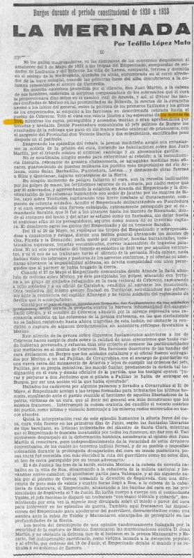 Este es un texto publicado el 4 de Julio de 1936 que habla de la retirada del cura Merino hacia los montes de Ura tras un enfrentamiento con tropas liberales en mayo de 1821, integrando el territorio en el escenario guerrillero.