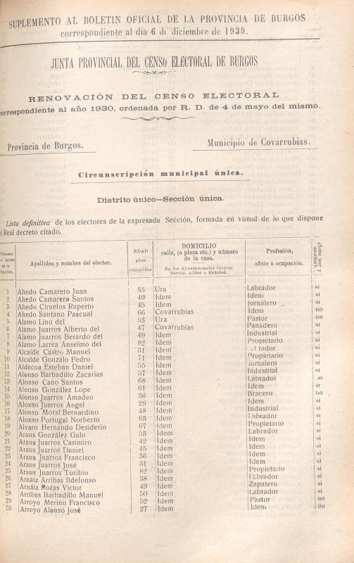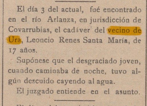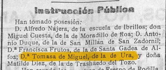 9 Marzo 1918 - Celestina Alcedo Camarero, de Ura, 23 años, Casa provincial. 2 Mayo 1919 - Francisca Alonso, de Ura, 30 años. San Juan, 48 17 Noviembre 1934 - Feliciano Camarero Camarero, de Ura, 75 años. Hospital Provincial. 25 Diciembre 1935 - Florentina Ciruelos Puente, de Ura. 69 años. San Esteban, 5 36 Abril 1937 - Juana Ahedo Ciruelos, de Ura ¿? Años. Juan de Vallejo, 4. 21 Enero 1958 - Engracia Camarero Ahedo, de Ura, 72 años. San Cosme, 18 24 Septiembre 1960 - Benito Camarero Camarero, de Ura. Fernán González, 26 1 Enero 1961 - Francisca Ahedo y Ciruelos, de Ura. 53 años. Juan de Vallejo, 4 13 Noviembre 1961 - Felisa Fuente y Ortiz, 74 años. Paloma, 11. 11 Enero 1963 - Restituto Ahedo Camarero, 38 años. Hospital provincial. 17 Enero 1963 - Dionisia Camarero y Camarero, 31 años. Barriada Inmaculada, 2ª manzana. 9 Febrero 1965 - Pedro Ahedo y Camarero, 82 años. Santa Clara, 53 11 Noviembre 1975 - Juan Camarero y Camarero, 75 años. 30 Mayo 1976 - Sergio Camarero y Camarero, 61 años. 8 Mayo 1980 - Roque Camarero y Camarero, de 78 años de edad. 19 Febrero 1981 - Ulpiano Camarero y Camarero, 59 años. 9 Agosto 1983 - Justino Camarero y Camarero, 72 años 31 Mayo 1985 - Irene Ahedo y Camarero, 89 años. 10 Diciembre 1985 - Jacinta Camarero y Núñez, de Ura. 71 años. 28 Febrero 1986 - Inocencio Camarero Camarero, de Ura. 76 años. 1 Noviembre 1986 - Guillermo Camarero y Camarero, de Ura. 74 años. 7 Noviembre 1991 - Narciso Camarero Camarero. 85 años. 3 Marzo 1992 - Tomás Camarero y Núñez, de Ura. Retuerta 70 años 27 Octubre 1994 - Fortunato Camarero Camarero, 76 años.