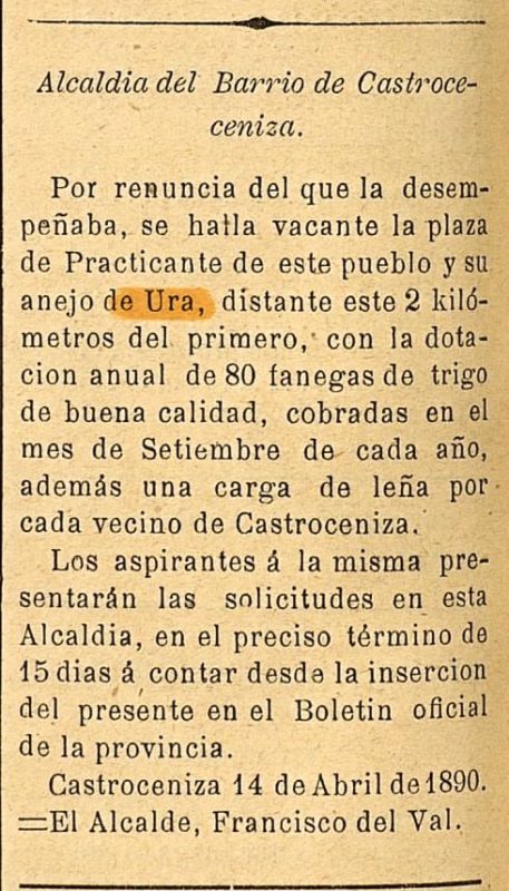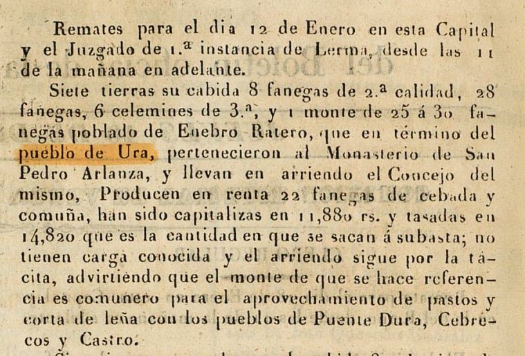 Esto hace suponer que Ura perdería ya su Alfoz y la gobernanza sobre los pueblos sobre los que tenía jurisdicción (Puendura, Covarrubias, Castroceniza, Cebrecos, Tordueles...)