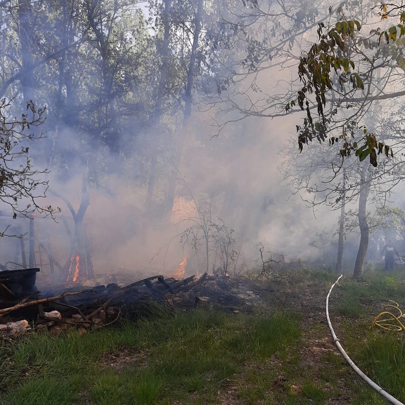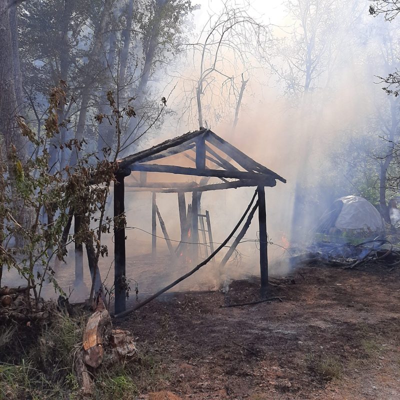 Pudo deberse a arrojar las cenizas de las cocinas, aún con brasas. Primero intervinieron los vecinos intentando sofocarlo, hasta que llegaron los bomberos voluntarios de Lerma, la Guardia Civil de Covarrubias, un agente forestal y un camión del servicio de extinción de la Junta de Castilla y León. Fotografías aportadas por Mikel Camarero