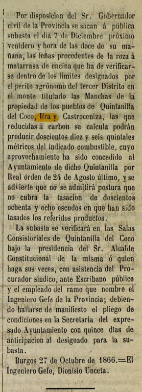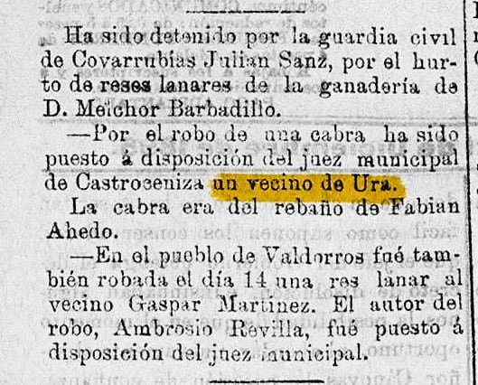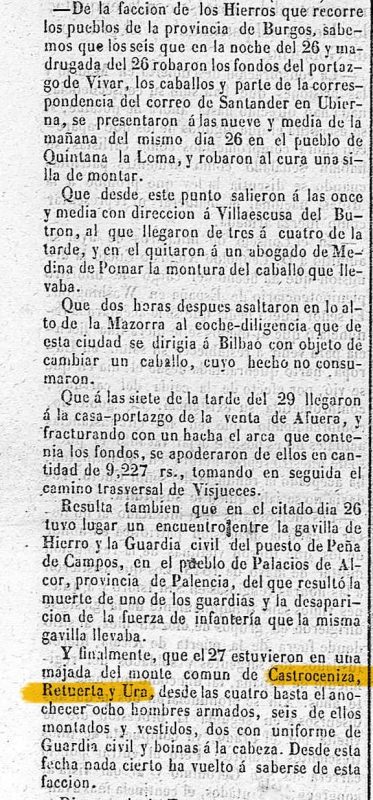 El 13 de mayo de 1855 la prensa informó del paso de la “Gavilla del Hierro” por el monte comunal de Castroceniza, Retuerta y Ura. Ocho hombres armados permanecieron allí varias horas tras una serie de asaltos en la provincia.