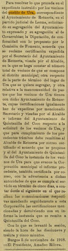 Se logró que el Ayuntamiento de Covarrubias reconociera formalmente la deuda económica acumulada con Ura.