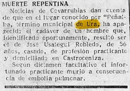 Teniendo en cuenta que la edad media de los habitantes será entre los 60 y 65 años, que no existe carretera, que no existe teléfono, que durante la mayor parte del año el único medio de transporte que existe en el pueblo es un tractor, ¿no piensan señores que a estos vecinos les están negando lo más esencial que es vivir? y si lo que ocurrió en Castroceniza hubiera ocurrido en Ura, señores autoridades, ¿quién se habría salvado? ¿Quién les habría socorrido?. Finalmente como burgalés que soy, quiero decir a las autoridades provinciales y regionales, que me da vergüenza que «Vds.», sigan dando premios de embellecimiento a unos pueblos, mientras existan pueblos como Ura, en el que sus vecinos «pagan» religiosamente los impuestos todos los años. Yo me pregunto y pregunto si ese pueblo habría sido tratado igual si alguno de sus hijos hubiese sido Abad o político.