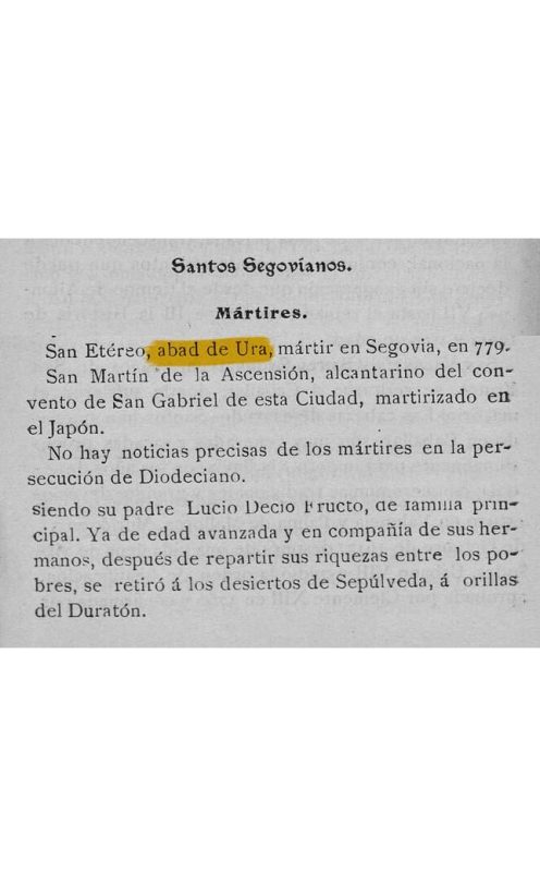 Una tradición recogida en una obra antigua menciona a “San Etereo, abad de Ura”.