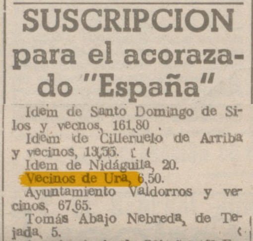 Suscripción para el acorazado "España": Vecinos de Ura 6,50 €