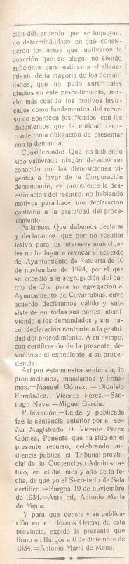 Unos días más tarde se publicó también una carta o artículo, en el que se recababa del pueblo burgalés y en especial de las autoridades provinciales, ayuda para los afectados del suceso, haciendo alusión a una serie de circunstancias como «Pueblo cuna de Abades. Pueblo recién salido del abandono», etc., que pienso no debe dar motivo a confundir la solidaridad, con una especie de paso de factura por los servicios prestados.