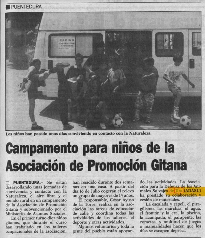 El verano de 1991, un grupo de diez niños gitanos estuvieron en Ura y Puendedura haciendo escalada, rapel, marchas y piragüismo, entre otras actividades, asistidos por los mientras de la Asociación de Ura ADASU.