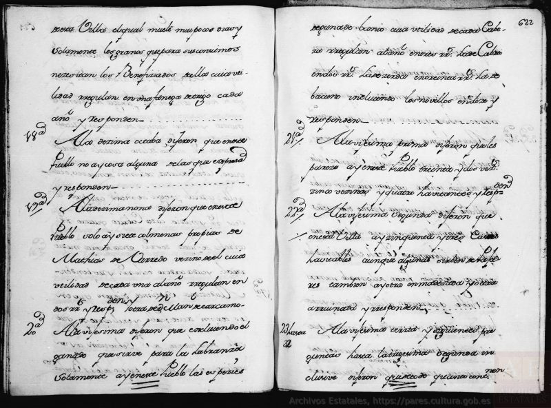 A la trijesima sexta y séptima preguntas dijeron no ay en este pueblo cosa de su contenido y responden…