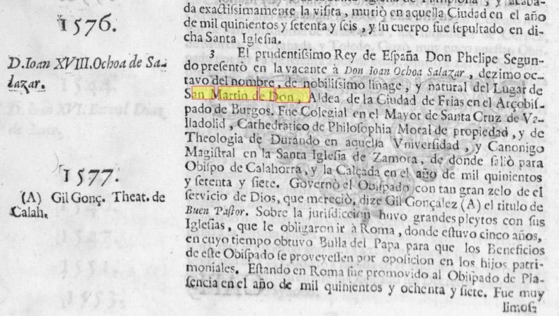 Al ser oriundo de San Martín de Don, hace que el nombre de nuestro pueblo aparezca en las crónicas. Esto nos cuenta en su "Historia de Santo Domingo de la Calzada" de 1702, Joseph Gonzalez: