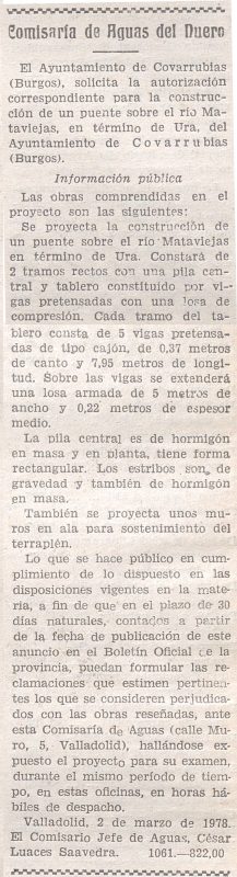En 1985 el Ayuntamiento de Covarrubias respondió públicamente a vecinos de Ura por impagos de contribuciones relativas a la electrificación y la obra del puente ejecutadas en 1980, reflejando tensiones en plena despoblación.