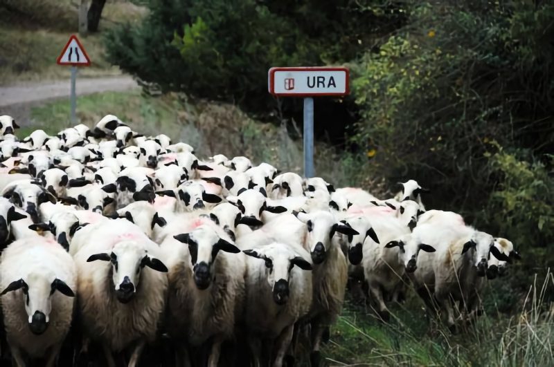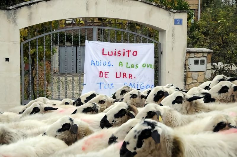 Ayudado por sus fieles perros Quijote y Neka, condujo al ganado a través de los caminos y cañadas hasta Quintanilla del Agua, donde ya había apalabrado su venta. En su paso por Puentedura, una pancarta hecha por algunos vecinos, despedía cariñosamente a las ovejas. "Será difícil que volvamos a ver pasar ovejas por nuestros pueblos", se les oia decir. Se pone fin así a un larga tradición de varias generaciones de pastores, y queda Ura vacía de corderos y ovejas –ya quedó hace muchos años vacía de vacas–, y los campos y montes huérfanos. Se echarán a perder las eras, y muchos senderos se borrarán.