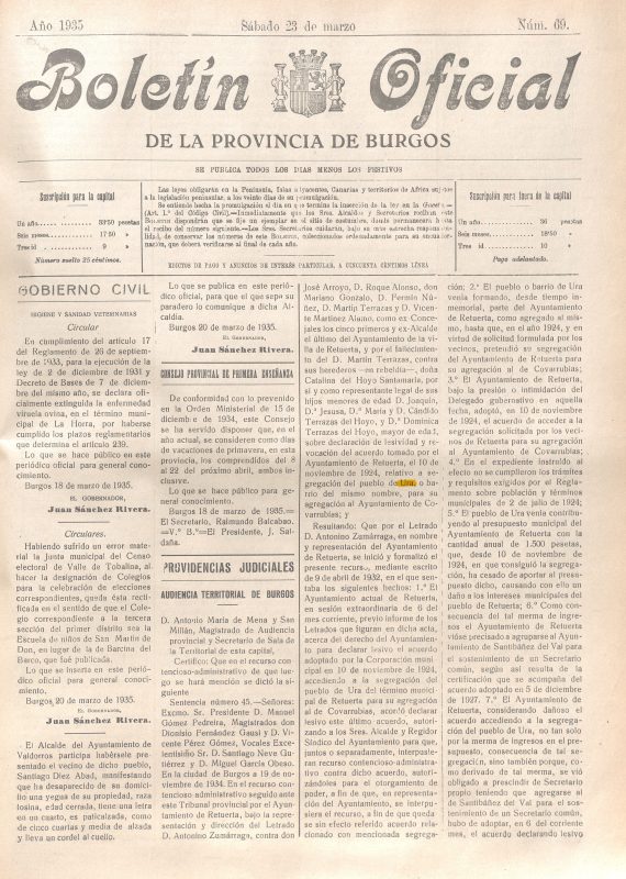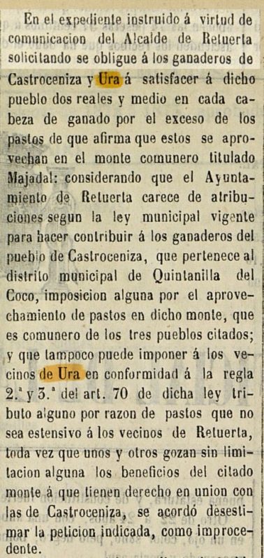 Esto hace suponer que Ura perdería ya su Alfoz y la gobernanza sobre los pueblos sobre los que tenía jurisdicción (Puendura, Covarrubias, Castroceniza, Cebrecos, Tordueles...)