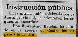 Nombramientos eclesiásticos. Su Excia. Rvdma. el Arzobispo, mi señor, ha tenido a bien nombrar a los Rudos. Sacerdotes que se expresan para los cargos siguientes: Ecónomo de Puentedura y sirviendo de Ura, D. Donaciano Pérez Gómez.