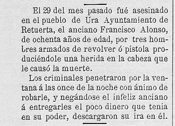 El 13 de mayo de 1855 la prensa informó del paso de la “Gavilla del Hierro” por el monte comunal de Castroceniza, Retuerta y Ura. Ocho hombres armados permanecieron allí varias horas tras una serie de asaltos en la provincia.