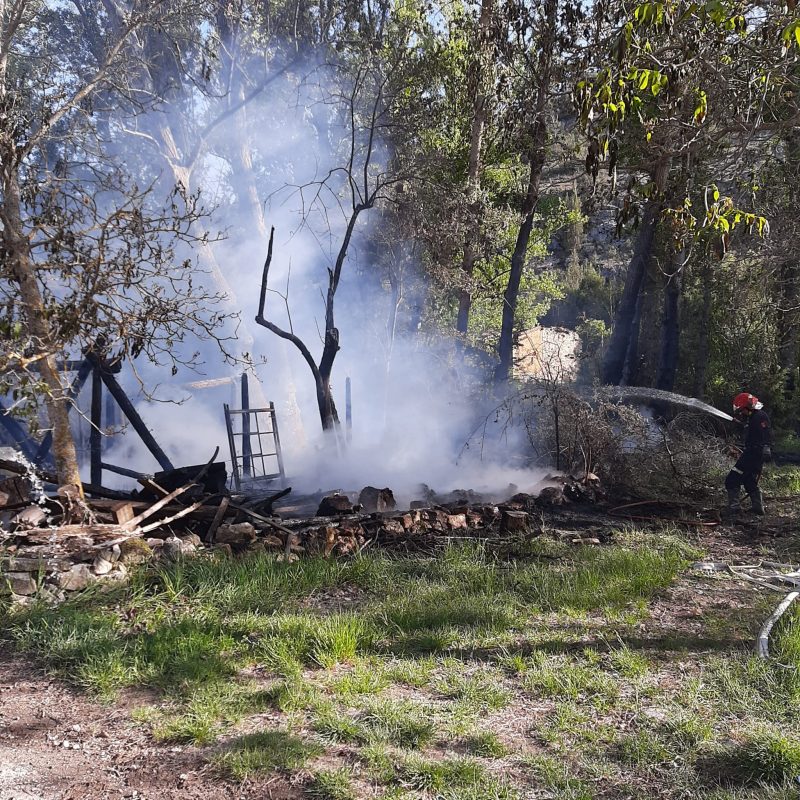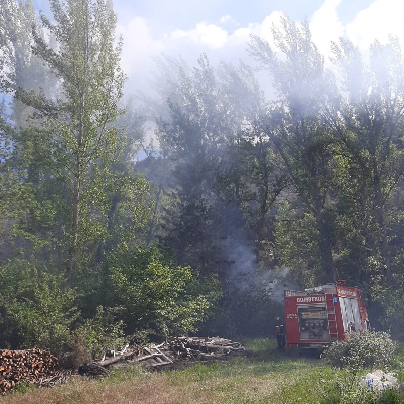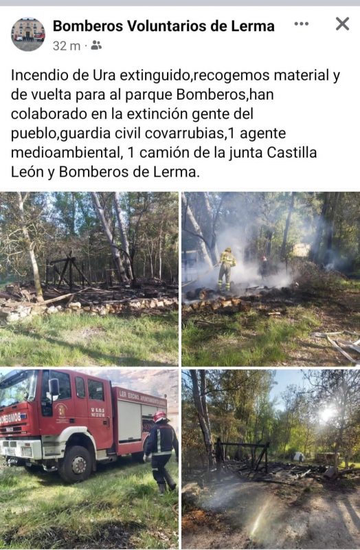 Pudo deberse a arrojar las cenizas de las cocinas, aún con brasas. Primero intervinieron los vecinos intentando sofocarlo, hasta que llegaron los bomberos voluntarios de Lerma, la Guardia Civil de Covarrubias, un agente forestal y un camión del servicio de extinción de la Junta de Castilla y León. Fotografías aportadas por Mikel Camarero