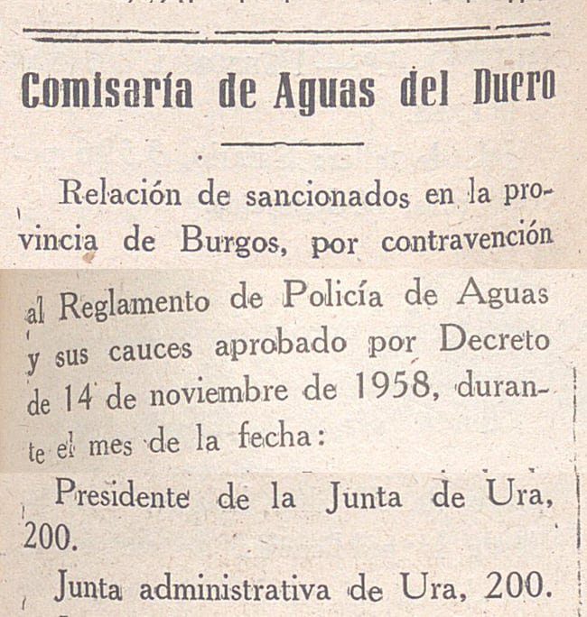 Presidente de la Junta de Ura, 200 pesetas. Junta administrativa de Ura, 200. Boletín oficial de la provincia de Burgos: Número 151 - 7 julio 1965
