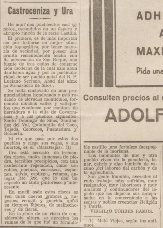 La carta fue enviada por Juan Manuel López Delgado, que después sería Alcalde pedáneo de Ura. Creo recordar que fue el día 27 de Julio cuando pude leer en ese periódico la noticia acerca del incendio habido en Castroceniza, pueblo de nuestra provincia y que había originado cuantiosas pérdidas (25 millones) a pesar de la rápida intervención de los distintos parques de Bomberos cercanos, incluido el de la capital. Unos días más tarde se publicó también una carta o artículo, en el que se recababa del pueblo burgalés y en especial de las autoridades provinciales, ayuda para los afectados del suceso, haciendo alusión a una serie de circunstancias como «Pueblo cuna de Abades. Pueblo recién salido del abandono», etc., que pienso no debe dar motivo a confundir la solidaridad, con una especie de paso de factura por los servicios prestados. Todos estos hechos, hacen que me dirija a estos nuestros «políticos» y dirigentes de nuestra provincia, para recordarles que durante una de las últimas elecciones, no tu- vieron ninguna clase de duelo para decir a «bombo y platillo» a través de TV y Prensa, que en esta provincia de Burgos, se había fletado un autobús para que fuesen a votar a un pueblo llamado Ura y que sólo había ido una persona. Pero se les olvidó decir al pueblo burgalés en qué condiciones vivían y viven en ese pueblo (Ura) la escasa docena de habitantes que tiene ya que a los demás les despachó el abandono en que les tienen. Este pueblo sólo está a 2,5 kilómetros de Castroceniza, (pueblo siniestrado pero con carretera, agua en casa, luz, teléfono y demás medios de comunicación). En Ura, señores autoridades, hay: 1.° Un penosísimo camino de piedras, de 5 kilómetros que le une con Puentedura. 2.° Una falta total de información del exterior del pueblo ya que no se puede ver la televisión y la radio con muchas dificultades, amén por supuesto de carecer de teléfono. 3.° Para agua de que servirse, solamente se dispone de una fuente que e s t áa unos 200 metros del pueblo, a ras de suelo y por la que pasan desde las ovejas, a algunos señores que van a acampar y friegan en ella, lo que hace que su salubridad quede muy en entredicho. En alguna ocasión se la ha declarado «no potable». 4.° Las señoras de este pueblo (unas seis) son en un 90% mayores de 65 años y para lavar tienen que ir la río, llamado Mataviejas, en el que vierten de pueblos más arriba, alguna que otra agua de granjas y molino, lo que hace que algunos días tenga un «perfume excelente». 5.° En materia de Sanidad, les diré que la escasa docena de habitantes, dependen del médico de Covarrubias, pueblo que está a 12 kilómetros por Puentedura. Teniendo en cuenta que la edad media de los habitantes será entre los 60 y 65 años, que no existe carretera, que no existe teléfono, que durante la mayor parte del año el único medio de transporte que existe en el pueblo es un tractor, ¿no piensan señores que a estos vecinos les están negando lo más esencial que es vivir? y si lo que ocurrió en Castroceniza hubiera ocurrido en Ura, señores autoridades, ¿quién se habría salvado? ¿Quién les habría socorrido?. Finalmente como burgalés que soy, quiero decir a las autoridades provinciales y regionales, que me da vergüenza que «Vds.», sigan dando premios de embellecimiento a unos pueblos, mientras existan pueblos como Ura, en el que sus vecinos «pagan» religiosamente los impuestos todos los años. Yo me pregunto y pregunto si ese pueblo habría sido tratado igual si alguno de sus hijos hubiese sido Abad o político.